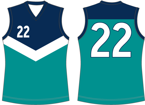 Teal, Navy Yoke & White Vee
